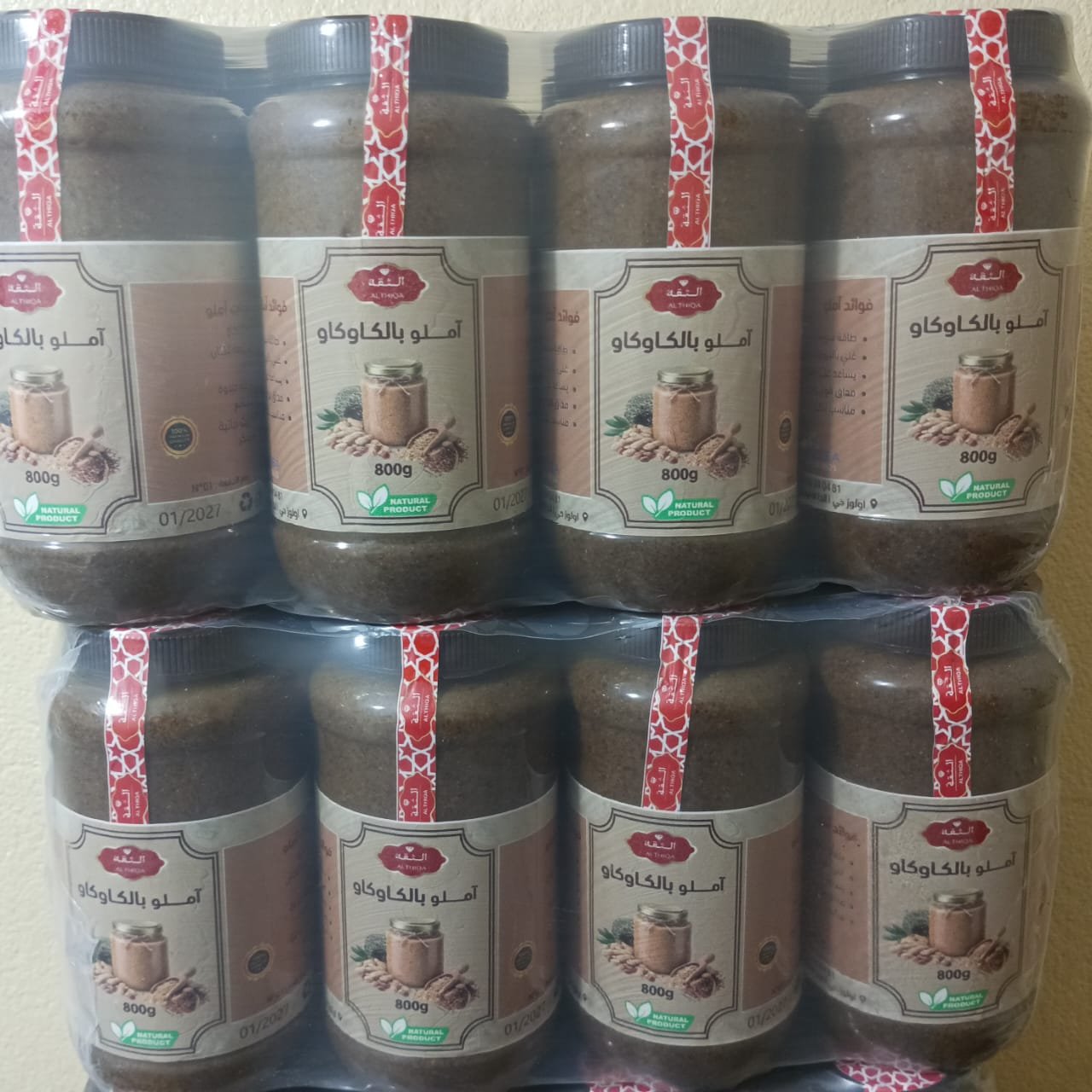 غرام (كرتونة 24 قرعة) 800 أملو بالكاوكاو وزريعة الكتانأملو بالكاوكاو وزريعة الكتان ثمن الجملة